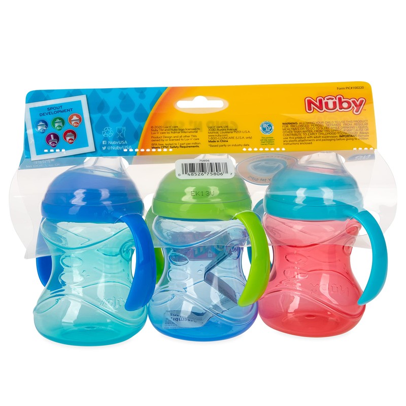 - Spills and leaks are a thing of the past. With Nuby’s 3 pack of Clik-It Grip N' Sip cups, parents don’t have to worry anymore about accidents and the stains that come with them.