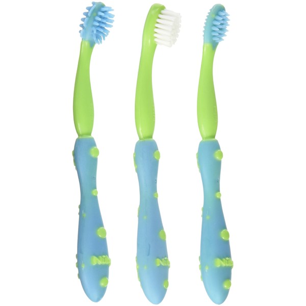 Nuby 754-100 Juego de 3 Cepillos de Dientes Entrenadores, Azul