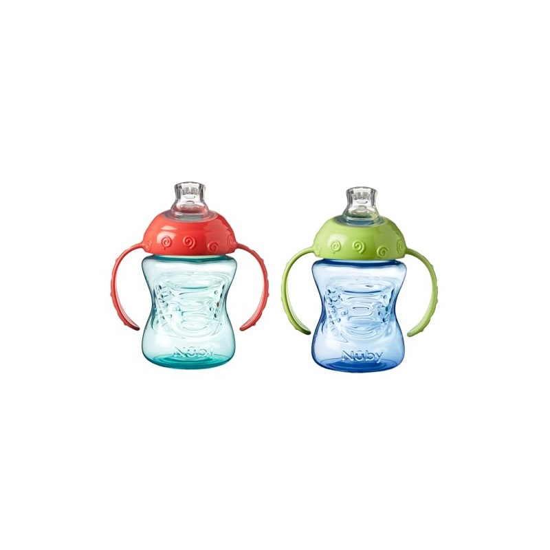 Nuby Grip N Sip Training Cup with Handle - Soft Leak-proof Spout - 240ml - Suitable from 4 Months (2 Pack, Blue/Green)