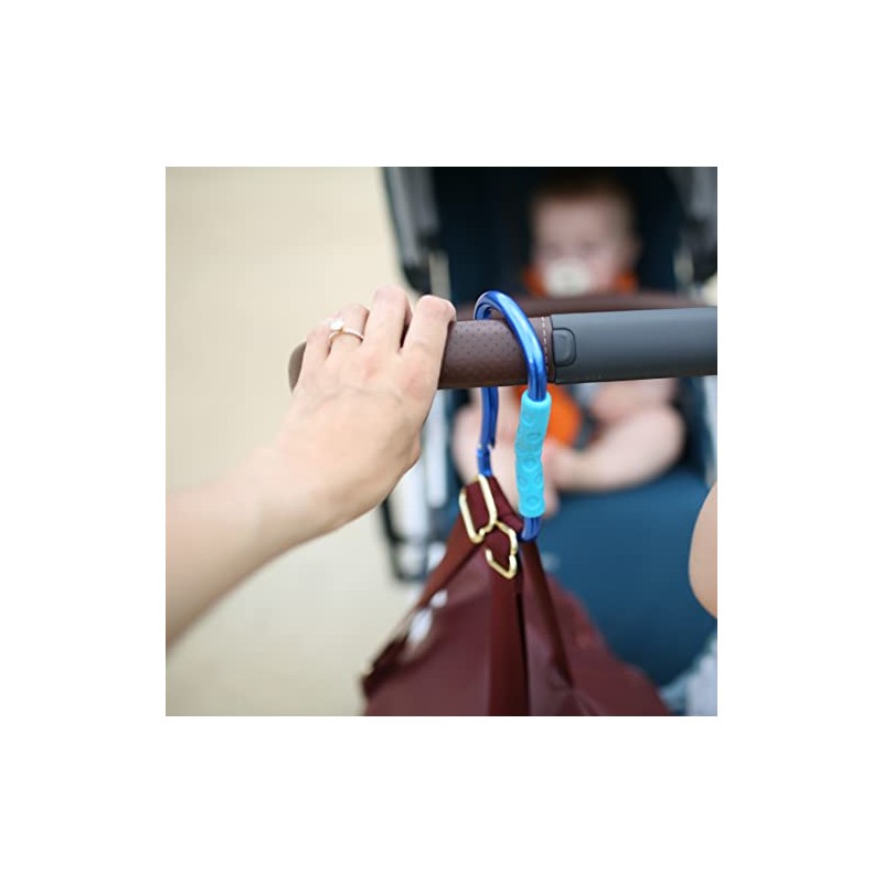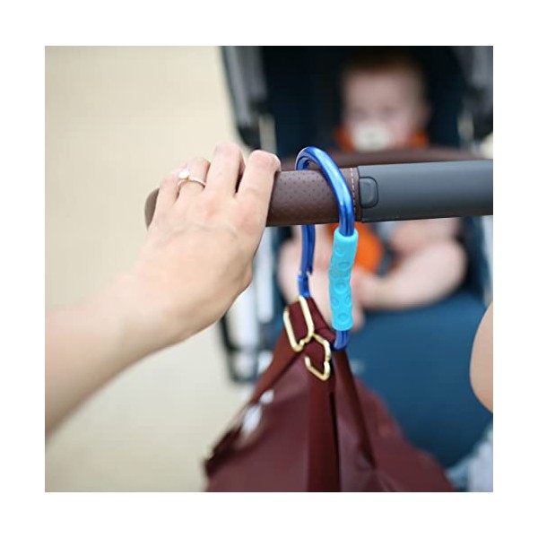- Textured Soft Grip: allows parents to carry multiple items on hook without hurting their hands. Colors May Vary: Red, Blue, Aqua, Green