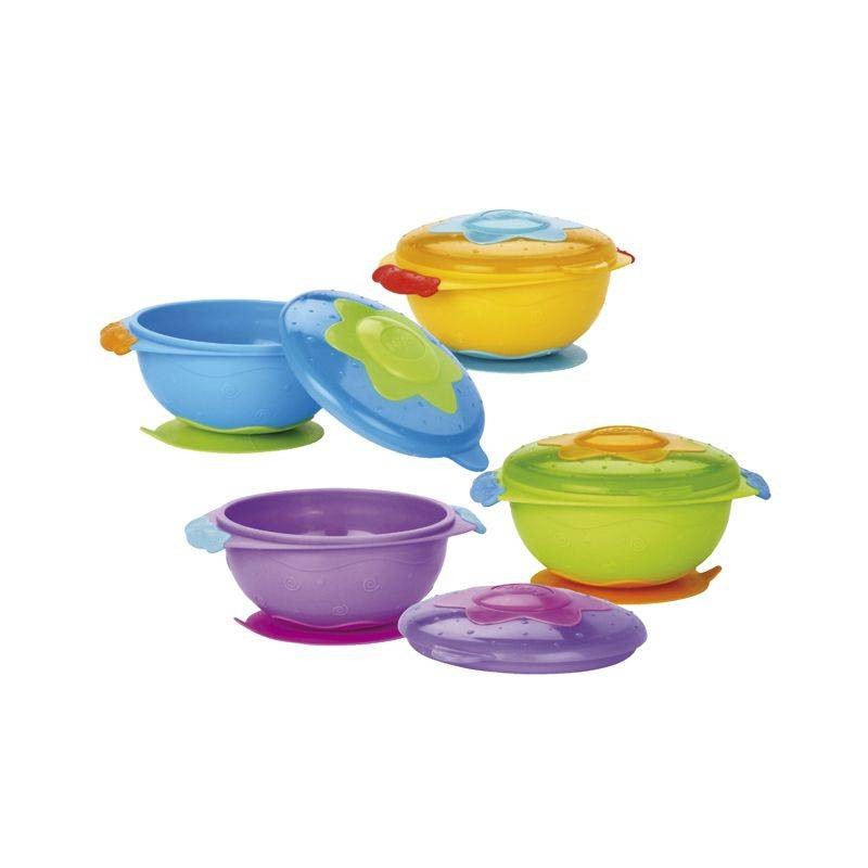 NUBY MICROWAVEABLE FEEDING BOWL WITH LID AND ANTI-SLIP FOOT, VARIOUS COLORS 1PIECE
