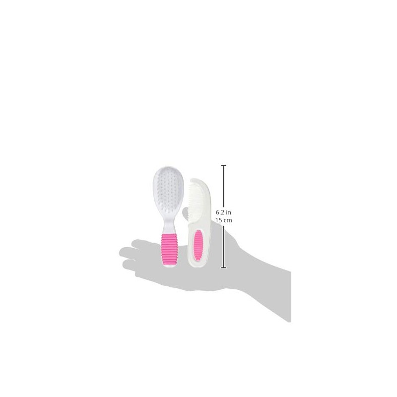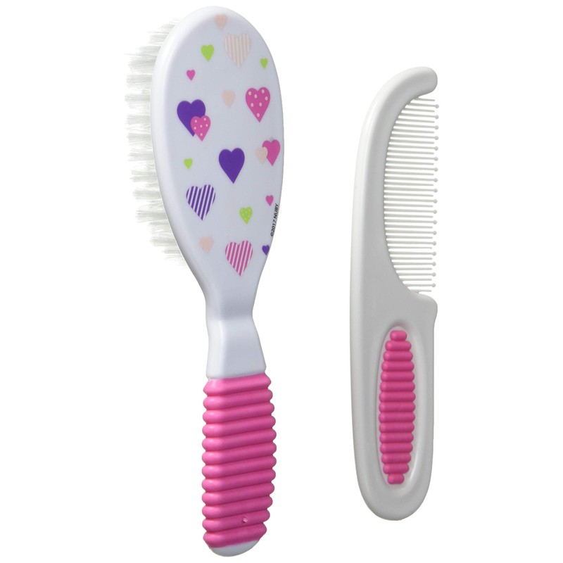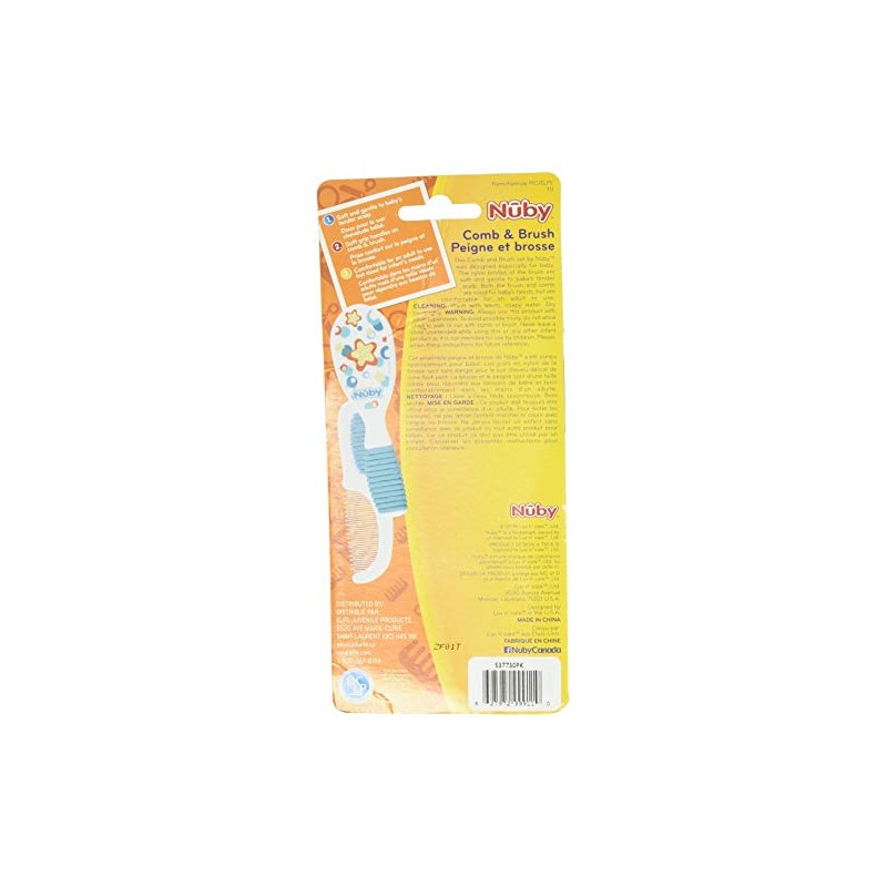The colorful Comb and Brush Set with soft grip handles by Nûby was designed especially for your baby. The nylon bristles of the brush are soft and gentle to baby’s tender scalp. Both the brush and comb are sized just right for baby’s needs, but are comfortable for an adult to use.