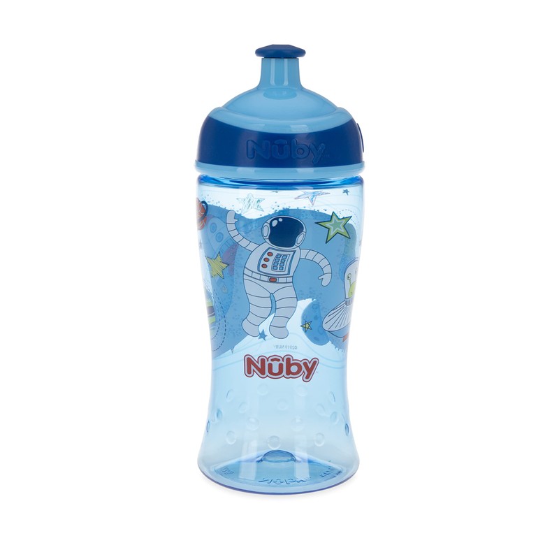 Nuby Printed Kids Pop Up Sipper Water Bottle, Colors May Vary, 1 Pack, 12 Oz., Multi