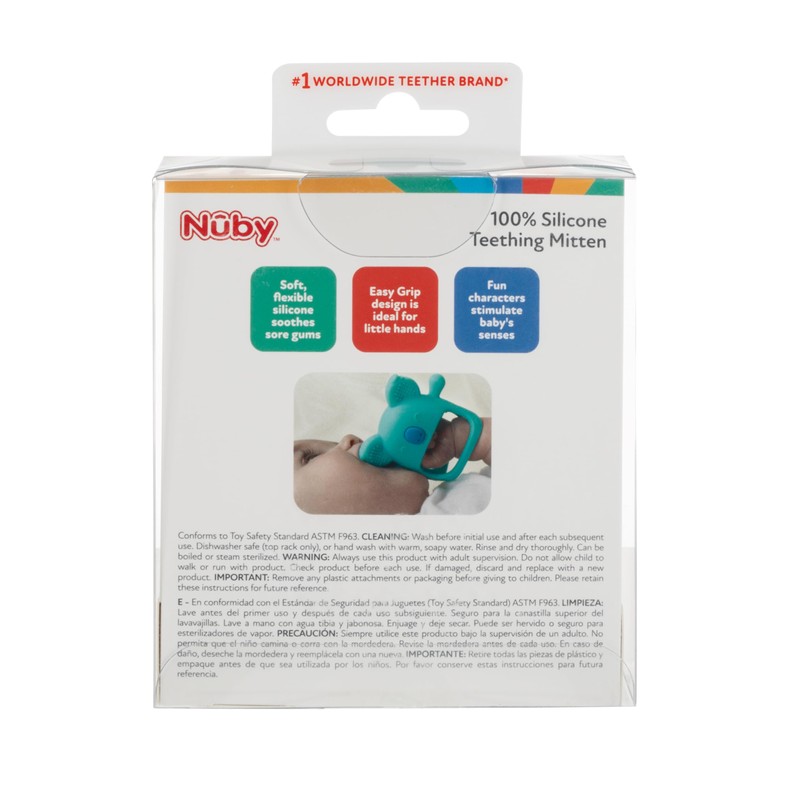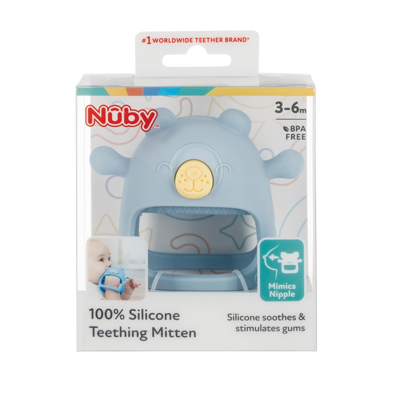 - DESIGNED FOR INFANTS: The Nuby Silicone Bear Teething Mitten is specially designed for infants, featuring an internal bar that's easy for tiny hands to grasp; Provides comfort and relief during teething for little ones who haven't mastered their grip yet
