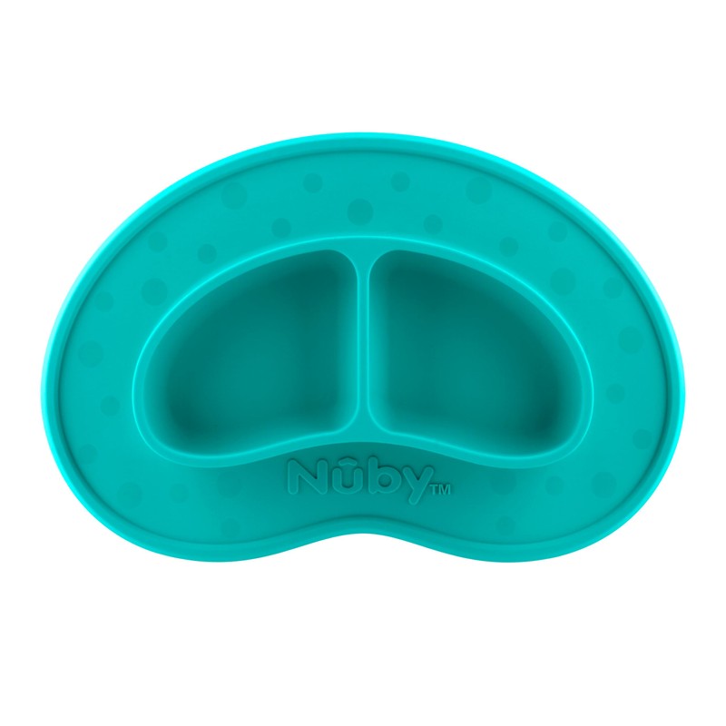 Nuby Sure Grip Miracle Mat 2-Section Plate - Toddler Suction Plate - 6+ Months - Aqua