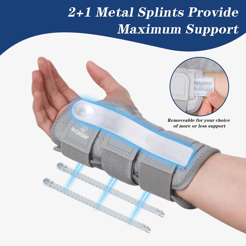 - Flexible Support and Adjustable Compression - Our carpal tunnel wrist brace comes with a removable aluminum splint, two fixed metal splints and three adjustable straps.This unique design enables you to customize the compression according to your specific needs.Whether you need a strong grip for intense activities or a lighter compression for daily tasks, our wrist braces can meet your requirements.while not limiting your movement.It's the ideal combination of flexibility and stability.