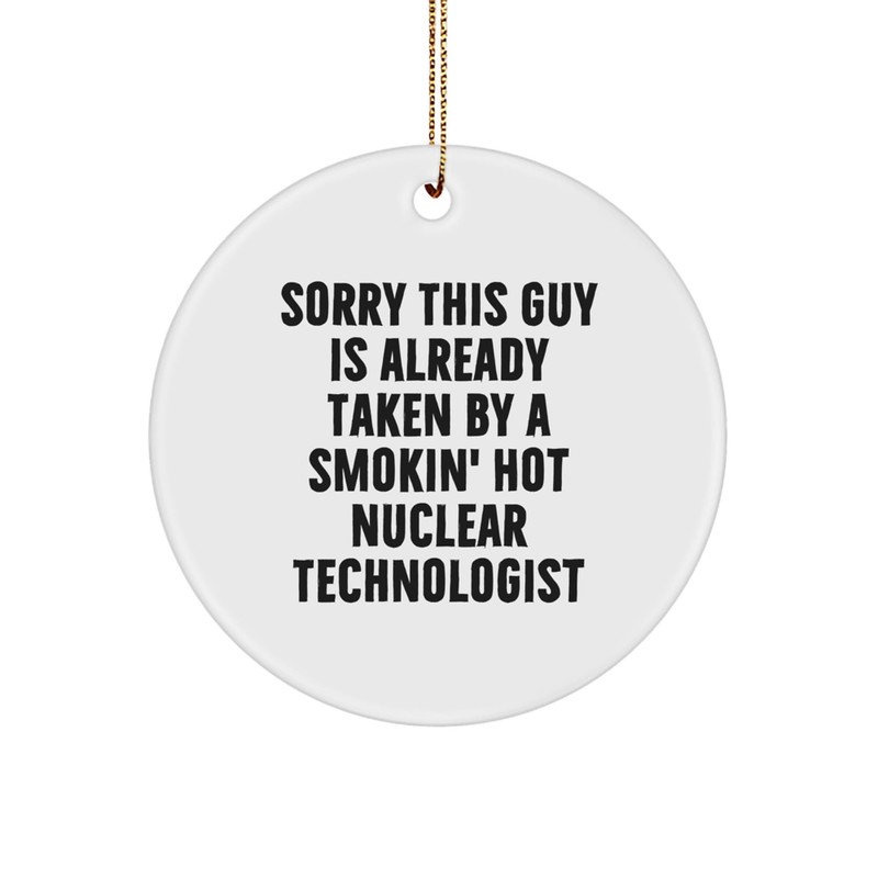 Nuclear Technologist Gifts for Men, Funny Circle Ornament with Sorry This Guy is Already Taken by A Smokin' Hot Nuclear Technologist, Christmas Unique Gifts from Friends