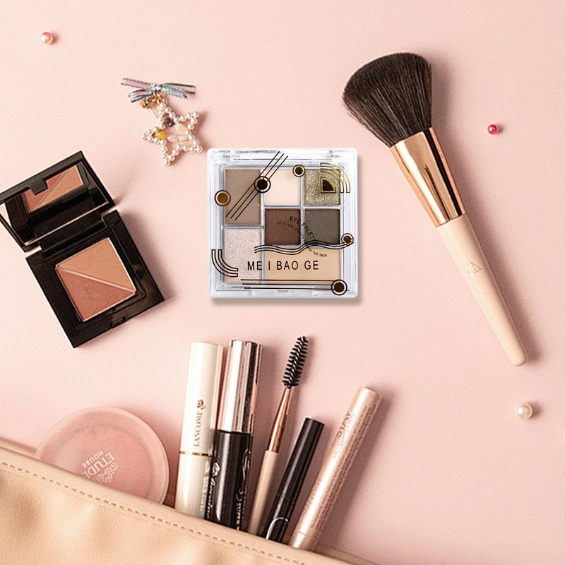 Nude Eyeshadow Palette, 7 Colour Matte Glitter Eyeshadow Brown Grey Nude Eyeshadow Earth Neutral Long Lasting Highly Pigmented Waterproof Shimmer Eye Shadow Pallets for Women