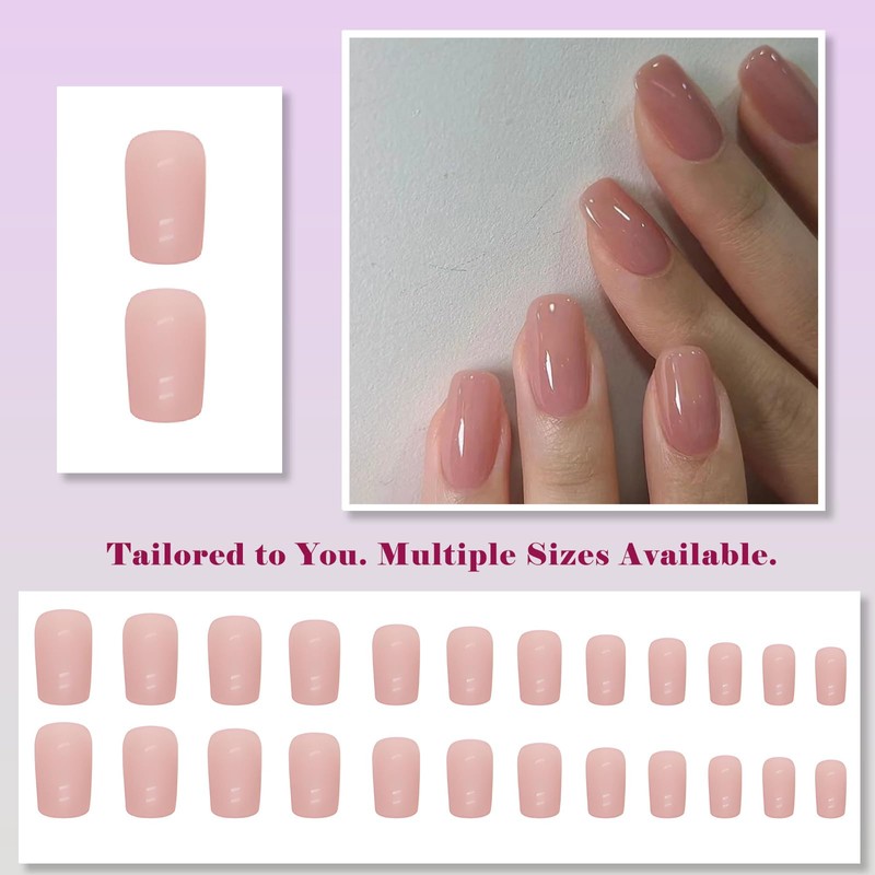 - 🌸 [Multiple Size Options] This set includes various sizes of short false nails to perfectly fit different nail beds. Easily trim with standard nail clippers for custom almond or square shapes. The flexible design ensures comfortable wear while maintaining a natural look with seamless edges.