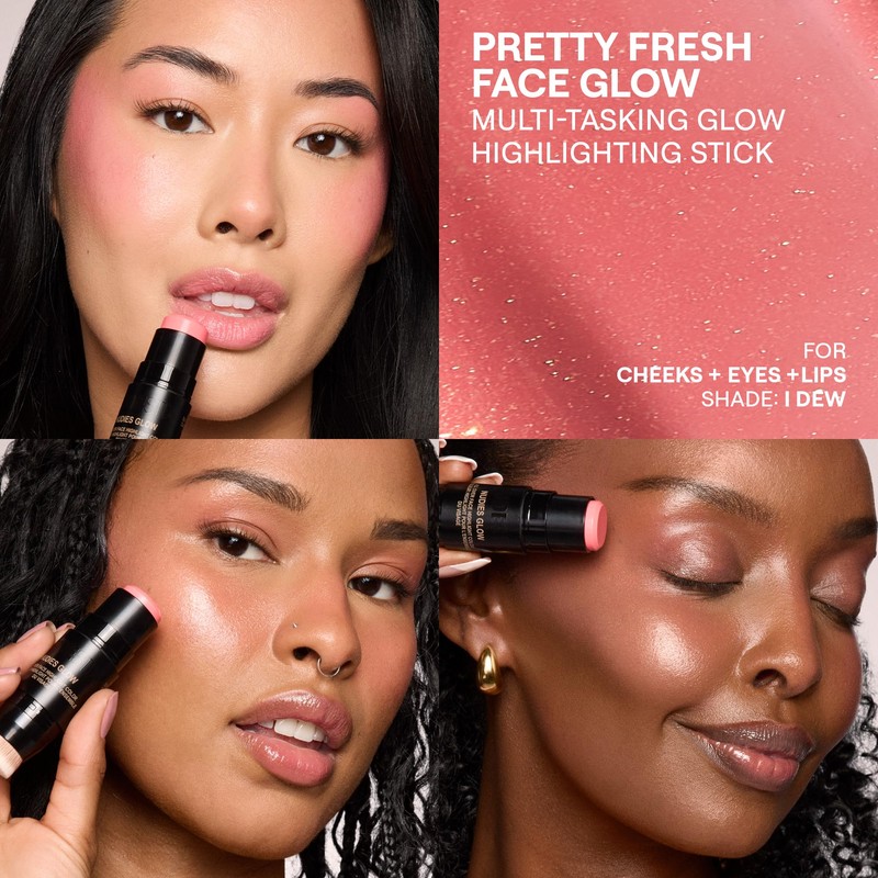 - WHAT IT IS: A dewy, skin-enhancing highlighter stick designed to give your complexion a fresh, glassy glow. The "I Dew" shade delivers a natural, translucent sheen perfect for creating that just-moisturized radiance across cheeks, lips, and even eyelids.