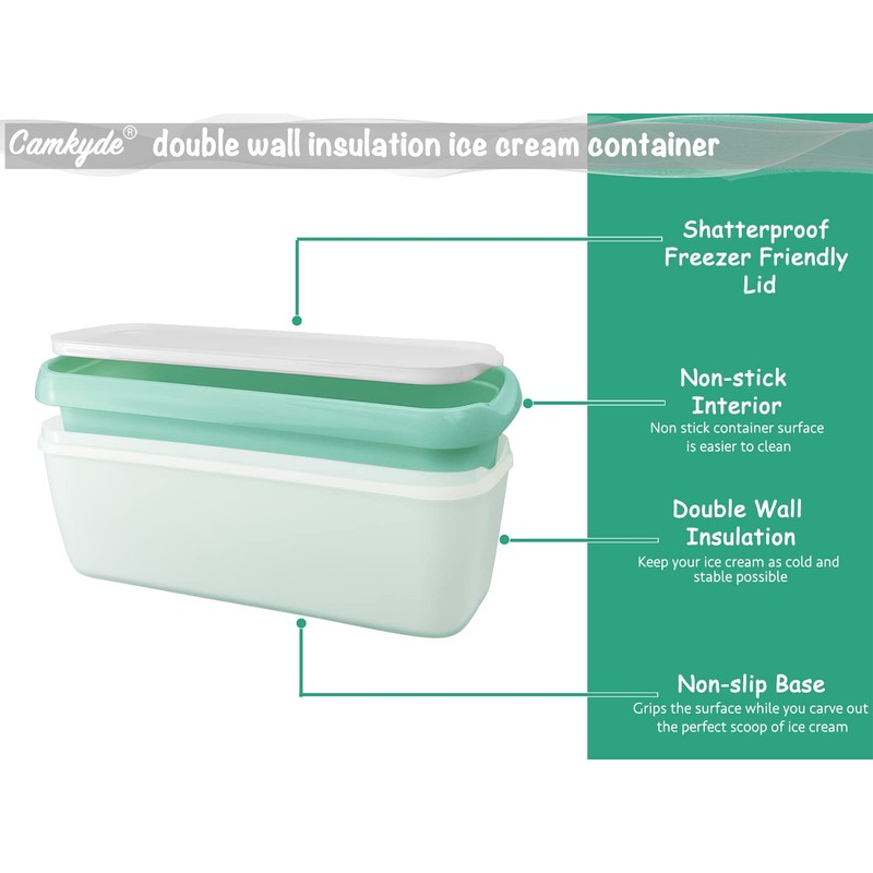 - Contenedores largos para helados para congelador. Estos recipientes de helado vienen con un diseño largo y delgado y una base antideslizante, lo que significa muy fácil sacar maravillosas bolas de helado. Los contenedores de helado se agarrarán a la superficie mientras tallas la cucharada perfecta de helado. Puedes hacer una bonita cuchara larga con un solo movimiento