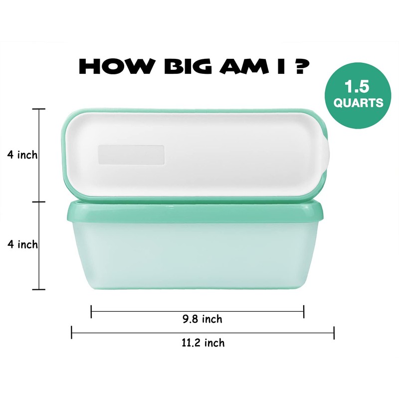 - Se adapta a cualquier almacenamiento de congelador. Estos recipientes de hielo caseros con tapas se pueden apretar en un congelador o puerta de congelador perfectamente debido a su diseño delgado. Estas tinas de helado caseras también se pueden apilar juntas para ahorrar espacio. Todas las piezas del recipiente de helado son aptas para lavavajillas. Gracias al interior antiadherente, el lavado a mano también se vuelve muy fácil