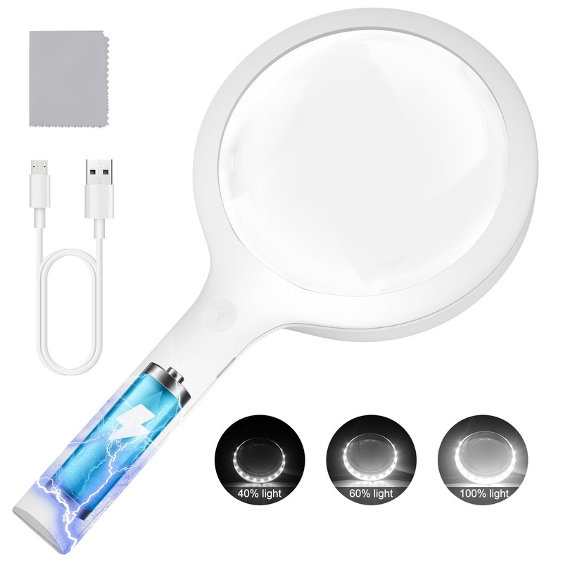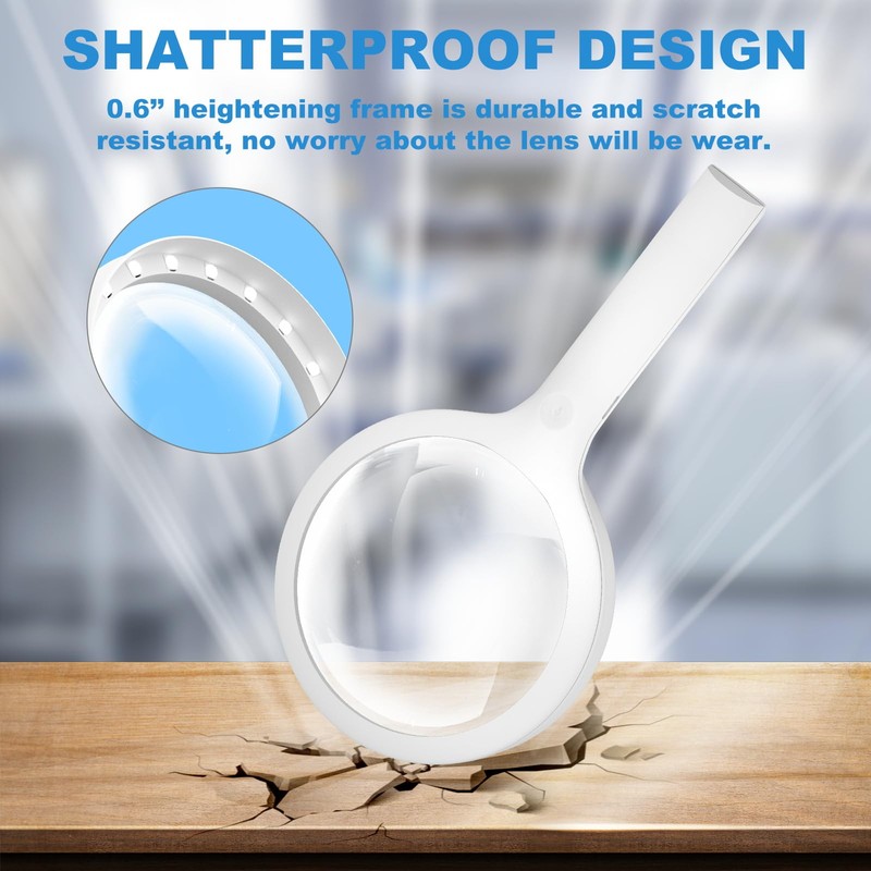 - Super clear vision: Equipped with a smart sensor switch and 20 Daylight LEDs Illuminated our large magnifying glass with light provides ample illumination, allowing you to see even in low-light environments. No more squinting or straining your eyes