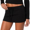 NUFIWI Women Drawstring Micro Skort Y2k Elastic Low Waist Bodycon Mini Skirt Mid Rise Short Sweat Skirts with Shorts, Basic Black, Large