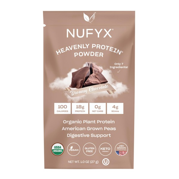 NUFYX Heavenly Protein Powder - Family Friendly Smoothie & Baking Mix - With 100% USA Grown Organic Peas - Clean - Vegan - Smooth Digestion (Dreamy Chocolate)