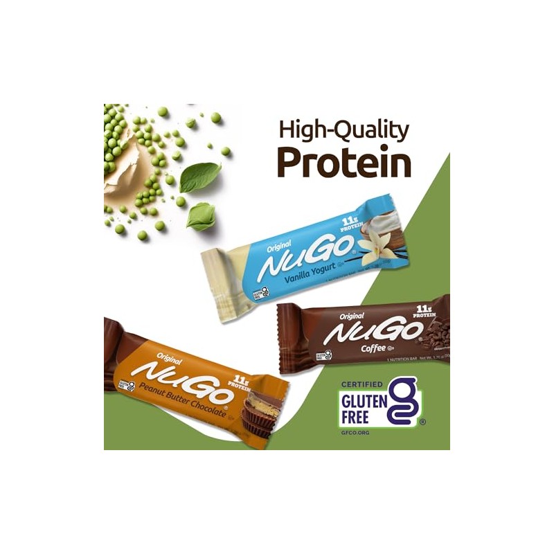 - Families love NuGo Protein bars! Every NuGo Original protein bar is made with real, non-GMO ingredients, loaded with vitamins, and certified gluten free to help keep your family fit and happy. Perfect for packing into their little lunches C or your own.