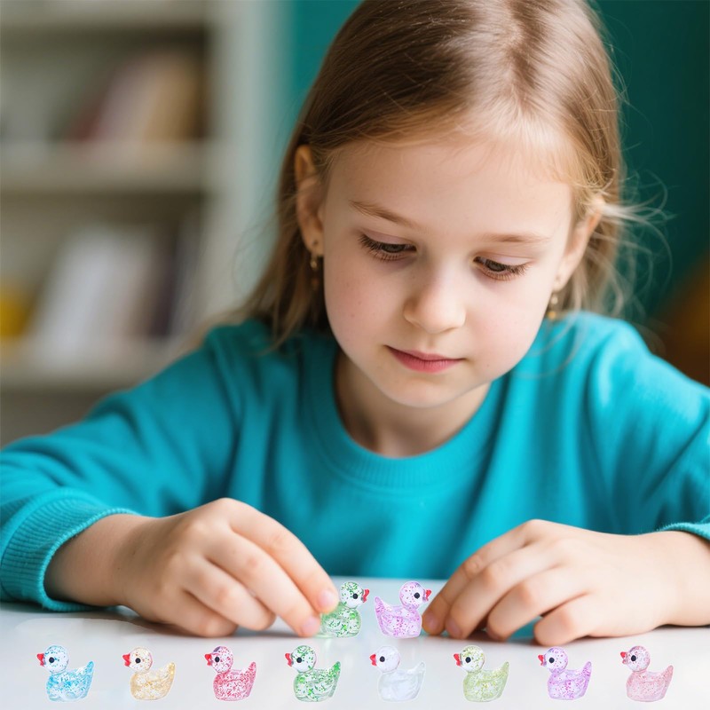 Nujvnuj Mini Ducks Pack of 100 Mini Duck Figures DIY Sparkling Colourful Ducks Mini Resin Ducks for Aquarium Garden Landscape Dollhouse Ornament Pot Decoration (12 Colours)