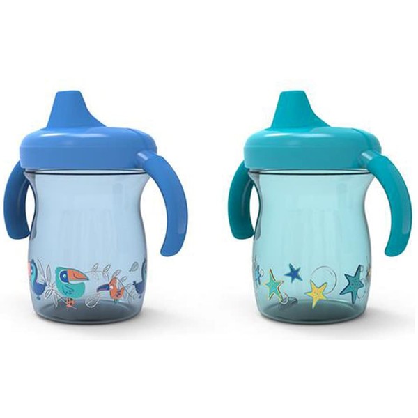 NUK First Essentials Fun Grips Soft Spout Trainer Cup, 7 oz. (2 Count (Pack of 1), Blue&Green)