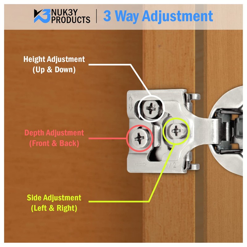 - 3 WAY ADJUSTABLE: The Superior 3D adjustability allows you to adjust the cabinet doors up and down, left and right, front and back, which will make sure that your bathroom and kitchen cabinet doors don’t sag, align correctly and open and slow close smoothly.