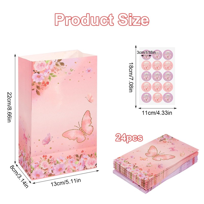 - 【Butterfly and Flowers Design】These cute gift bags printed with beautiful butterfly and flower patterns, beautifully designed with fairytale elements, lifelike, coordinated, and complementary. Make your gift more exquisite with these charming butterfly gift bags.