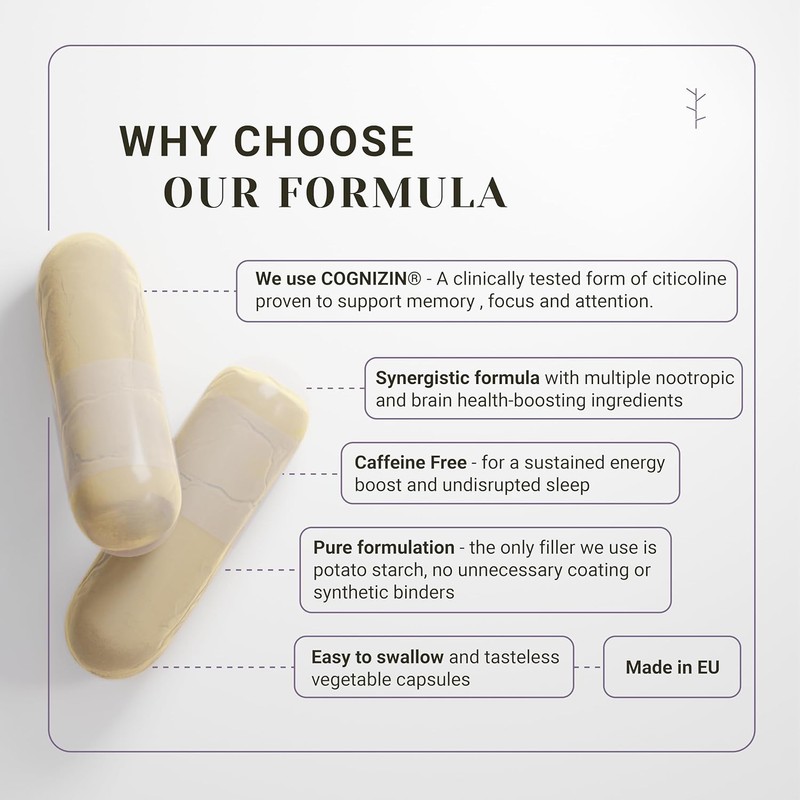 Easy-to-Use Daily Dose: Simply take 2 capsules daily, anytime, preferably with food, for optimal results in supporting your memory and focus.