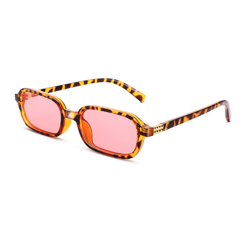 NULOOQ Retro Rectangular Sunglasses for Women, 90s Trendy Small Narrow Square Frame Sun Glasses (Leopard Frame/Pink Lens)
