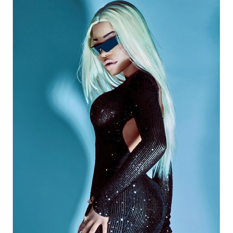 NULOOQ Y2K Rimless Futuristic Wrap Around Sunglasses Women Men, Trendy Cyberpunk Visor Sunglasses Monoblock Cyclops Shades (Black Frame/Blue Mirrored Lens)
