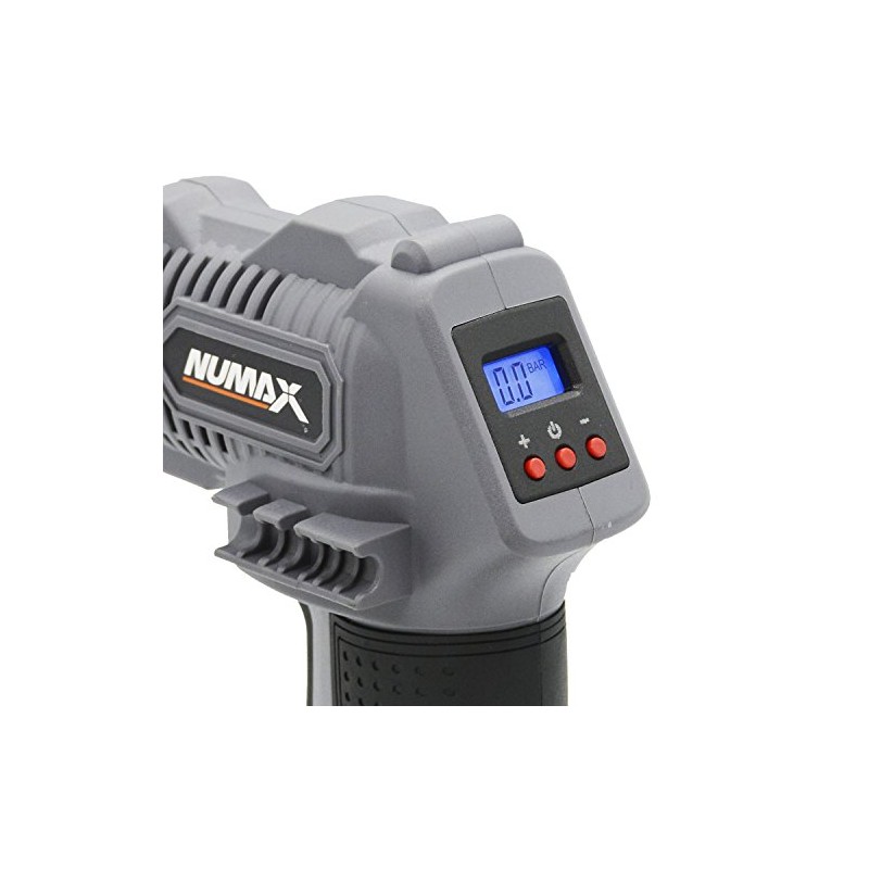 - Backlit LCD pressure gauge is programmable and automatically shuts off at the preset pressure