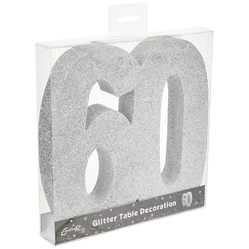 Number 60 Glitter Table Decoration Silver| Table Centrepiece | Table Decorations Centrepiece | 60th Birthday Decorations | 60th Wedding Anniversary Decorations| Pack of 1 | 20cm |H118
