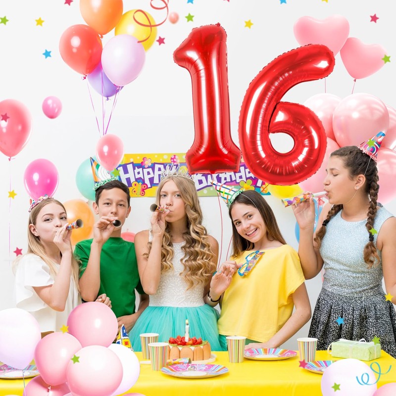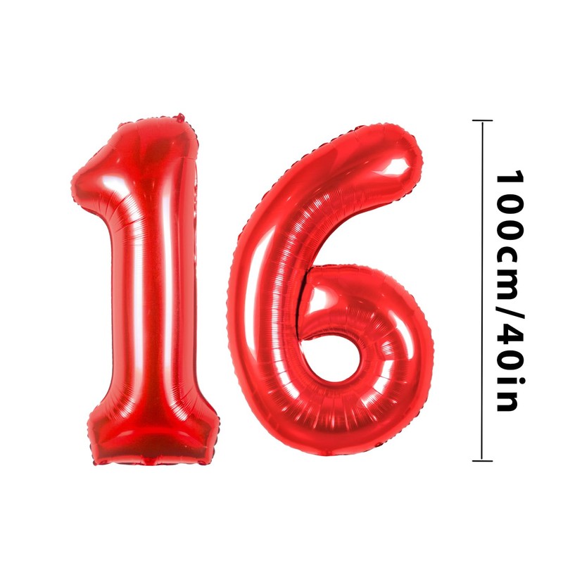 - Red Number 16 Balloons: Number balloons measures is 40", you will get 40" number balloon and an inflatable accessory. Each number is independent. For example, 18. It can be used as 1 or 8 or 18 or 81.It is the perfect choice for your birthday party balloon decoration.