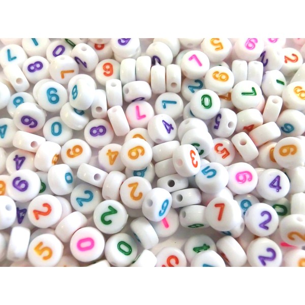Number Beads Round 7 mm Beads Numbers Mix White Colourful (200 Number Beads White Colourful #25)