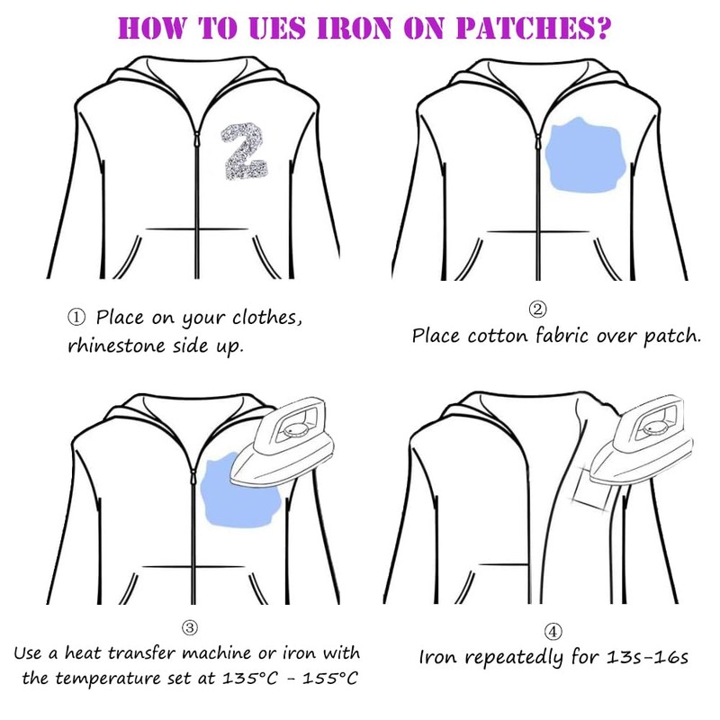 - EASY TO USE: Hot melt adhesive on the back of the sticker, adjust the position and stick it on the fabric, iron the rhinestone sticker repeatedly for 13-16 seconds, then it can be glued on the smooth surface.