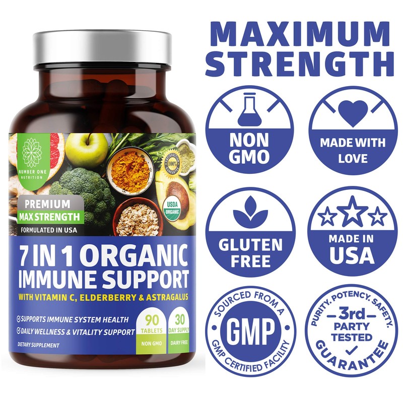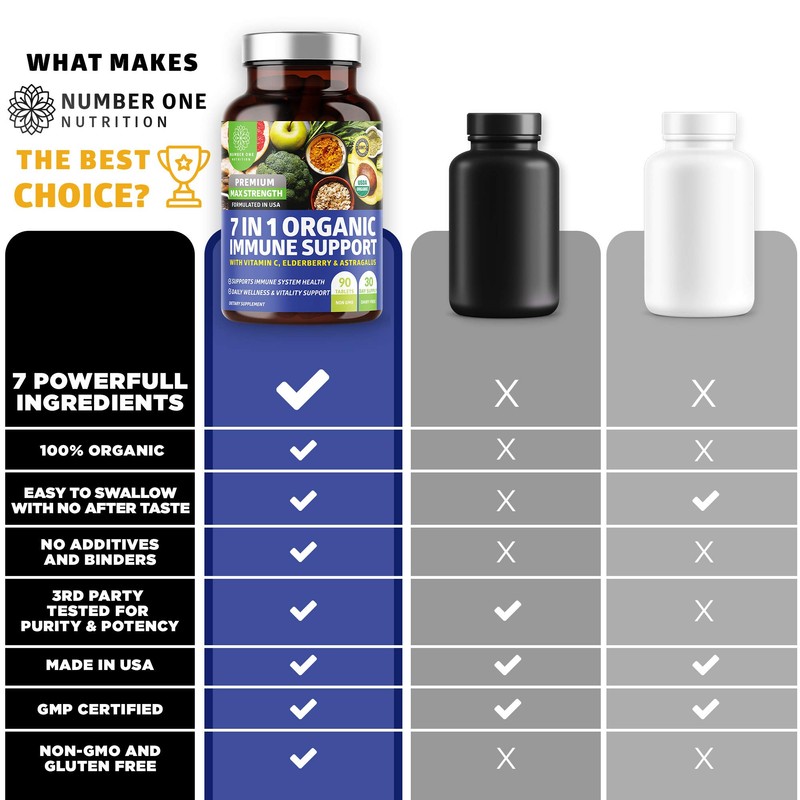 N1N Premium 7 in 1 Immune Support Supplement [100% USDA Organic] Daily Immune Boost with Vitamin C, Elderberry, Moringa Leaf, Oregano and Garlic for Immunity and Inflammatory Response, 90 Tablets