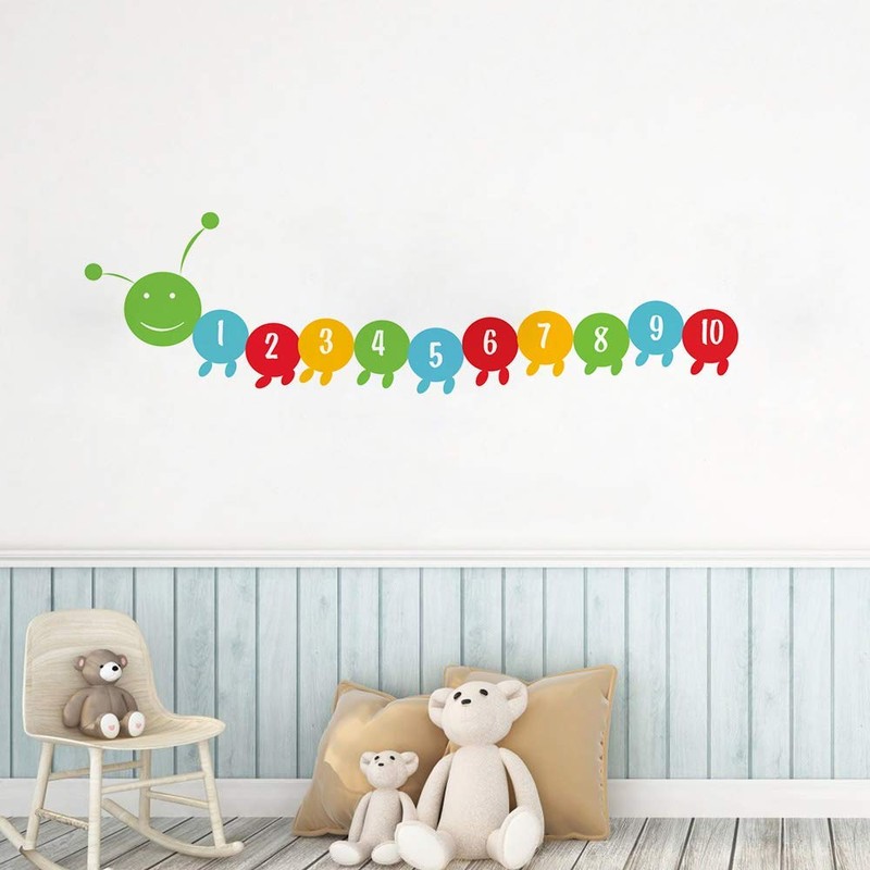 Number Wall Decals Hungry Worm Number Counting Number Wall Decals - Number 1-10 Wall Sticker for Kid's Playroom Bedroom
