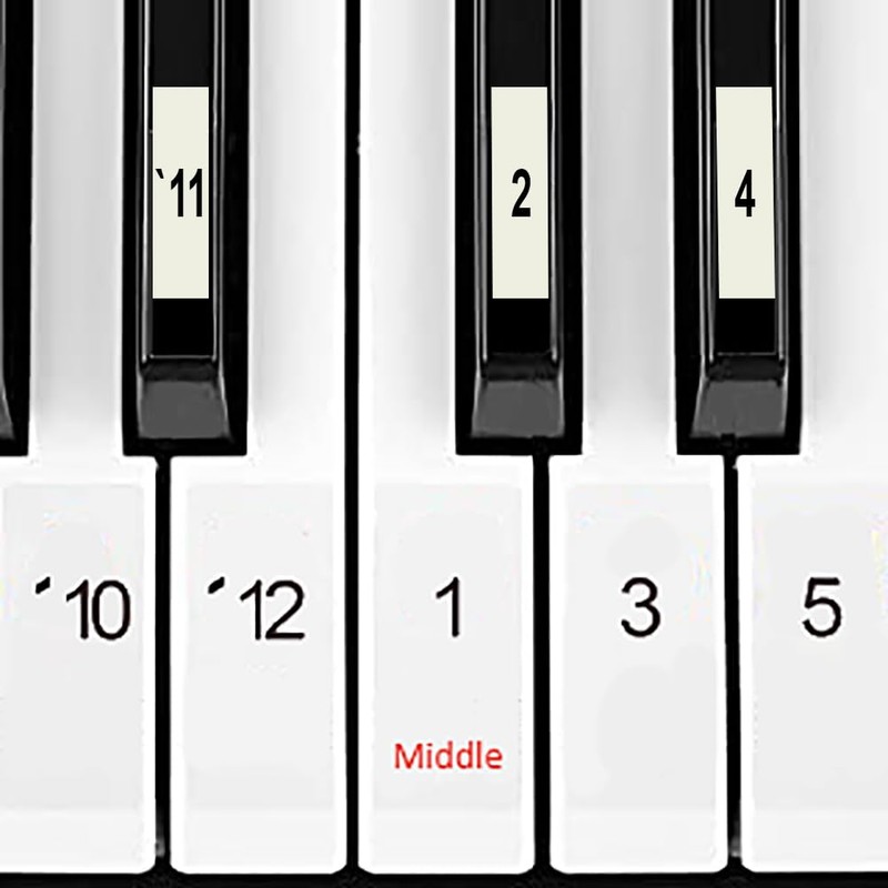 Numbered Piano Keyboard Stickers in Classic Numbers Design with 4 Easy to Play Beginner Songs.