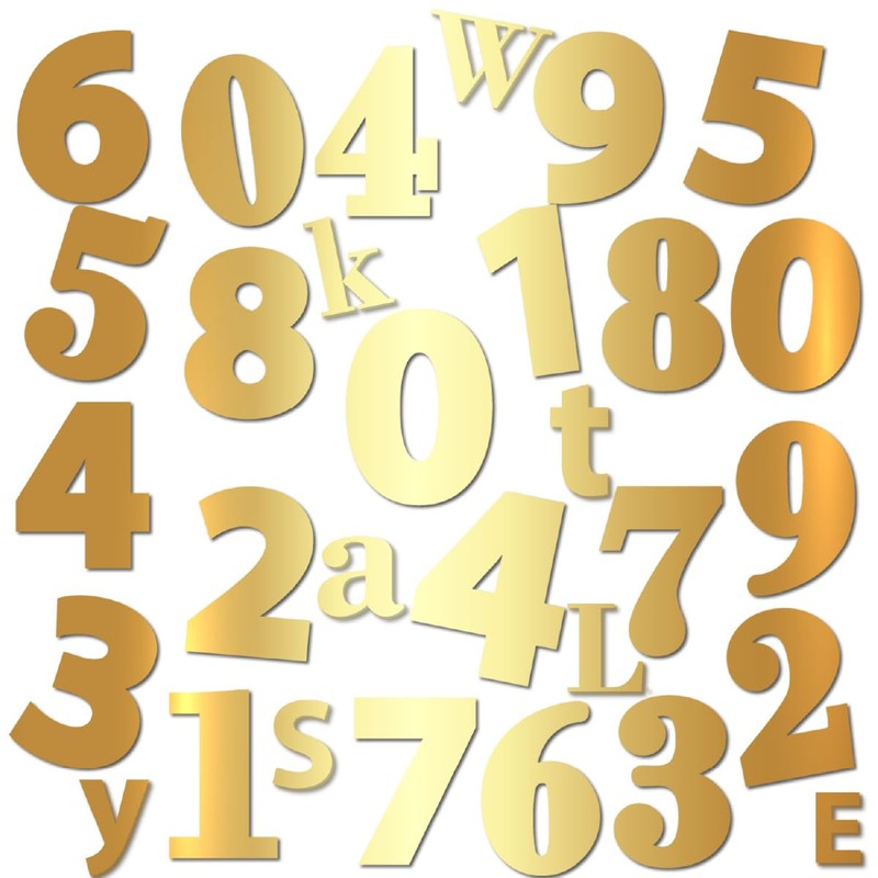 Numbers & Letters Cut Out House Number - PVC House Number - Adjustable Font (XS - 6 cm, Shiny Gold)