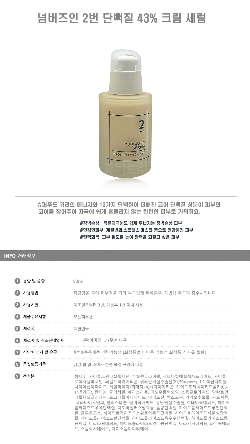 넘버즈인 2번 단백질 43% 크림세럼 50ml