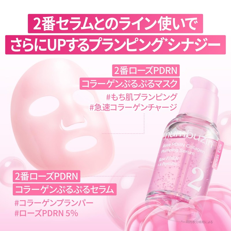 ナンバーズイン(numbuzin) 2番 ローズPDRNコラーゲンぷるぷるマスク 4枚入りㅣ弾力 プランピング 韓国スキンケア シートマスク フェイスパック パック