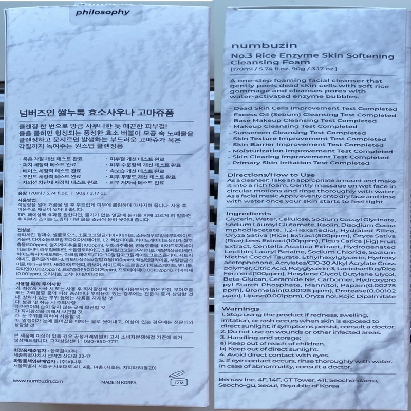 numbuzin No.3 Cleansing Foam | Rice Enzyme Skin Softening Cleansing Foam | 170ml