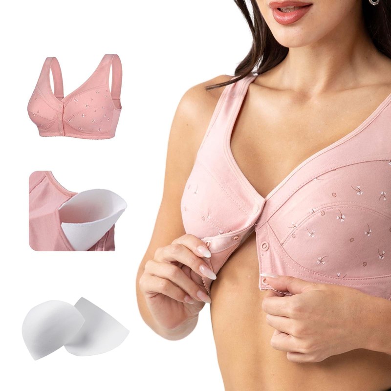 Numgug Daisy Bra for Seniors Front Closure:With Removable Pads Full Coverage Comfor Easy Close Bra for Older Women Front Snap No Underwire Bra