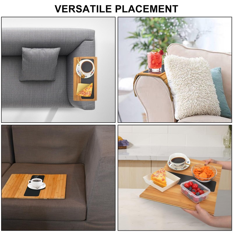 - Keep The Sofa Arm Clean: First, use the food trays for eating on couch, you will never worry about spilling things on the sofa arm. Second, it can also protect the cleanliness of sofa from stains in daily use. It's much easier to clean this sofa arm tray than clean a sofa.