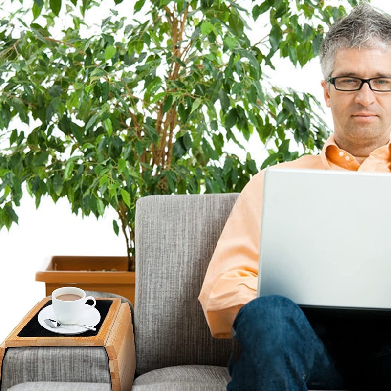 - Premium Quality Material: The sofa arm clip table is made of solid wood with non-silp pads is more stable. High-quality non-slip leather mat can effectively prevent your beverages from spilling.