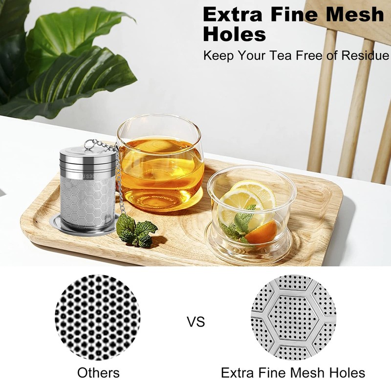 - Extra Fine Mesh: 0.5mm ultra-fine pores have strong filtration function, preventing the leakage of tea residue, and you can enjoy clean and pure tea. This tea maker can be used to boil various loose tea leaves, as well as to add spices and cook soup.