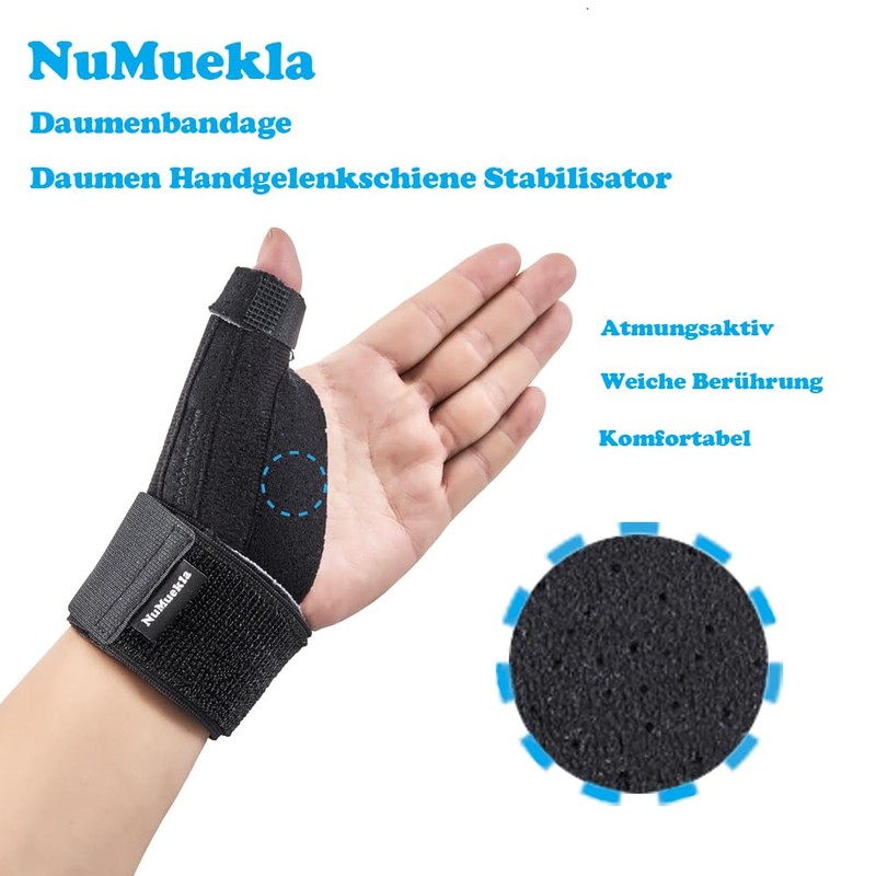 - Practical and versatile: it is universal and easy to use. NuMuekla thumb splint can professionally stabilize and support weak thumb or wrist. Relieve pain in the thumb or wrist caused by arthritis, ligament tears, sprained hand, tendonitis, repetitive stress injury, CMC, carpel tunnel syndrome. Recover thumb or wrist from injury and use for daily activities, typing, texting, gaming and playing digital products such as phone.