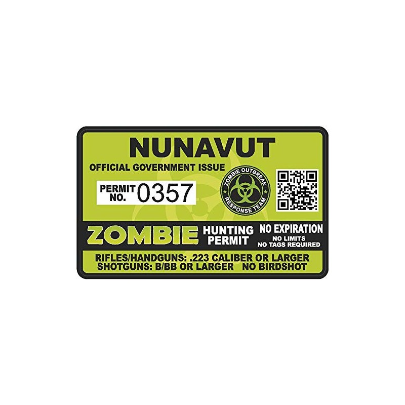 - Nunavut Zombie Hunting Permit - Hunter response biohazard team Unit 4" Outbreak Sticker