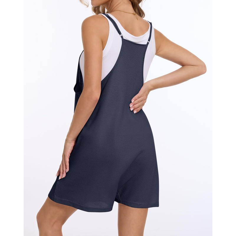 nunflue Womens Loose Sleeveless Waffle Knit Romper Adjustable Spaghetti Strap Stretchy Shorts Jumpsuits with Pockets
