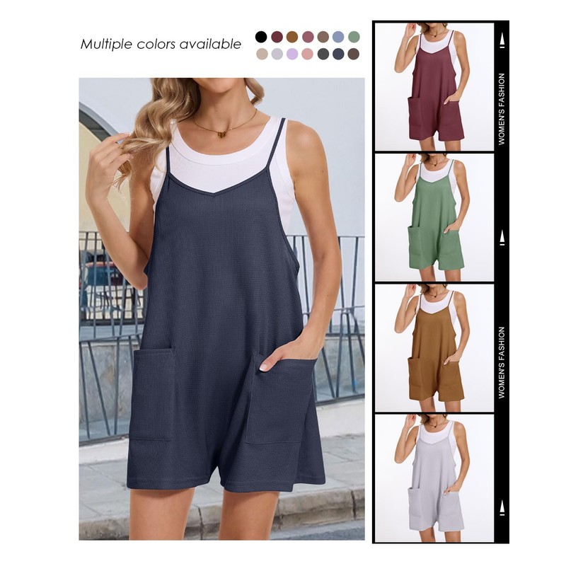 - Material - Spaghetti strap summer Waffle Knit rompers made of 100%Polyester. The fabric is soft and comfortable, stretchy, lightweight and breathable.Experience the ultimate comfort and style all day long.