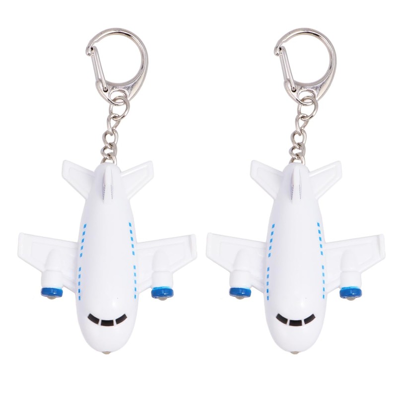 NUOBESTY 2pcs Plane Keychain Led Light Up Airplane Key Ring Cartoon Key Fob with Sound for Bag Purse Charms Car Keys Kids Birthday