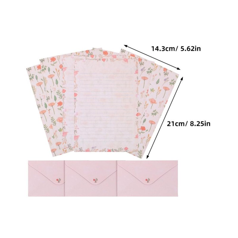 - Flora Stationery Set - The Floral Stationery Writing Paper features a beautiful floral pattern at the corner and a slightly colored background, adding a touch of sophistication to your writing experience. The matching envelopes are also adorned with the same floral design, creating a cohesive and stylish set.