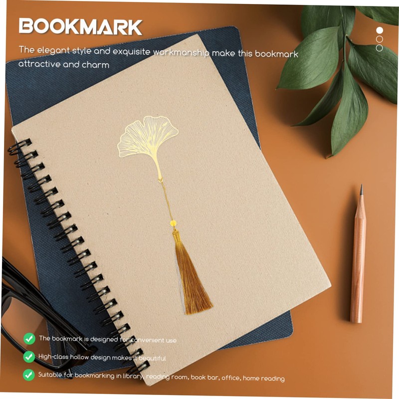 NUOBESTY 6pcs Delicate Hollow Metal Bookmarks Tassels Ginkgo and Lightweight and Elegant Bookmarks for Readers Book